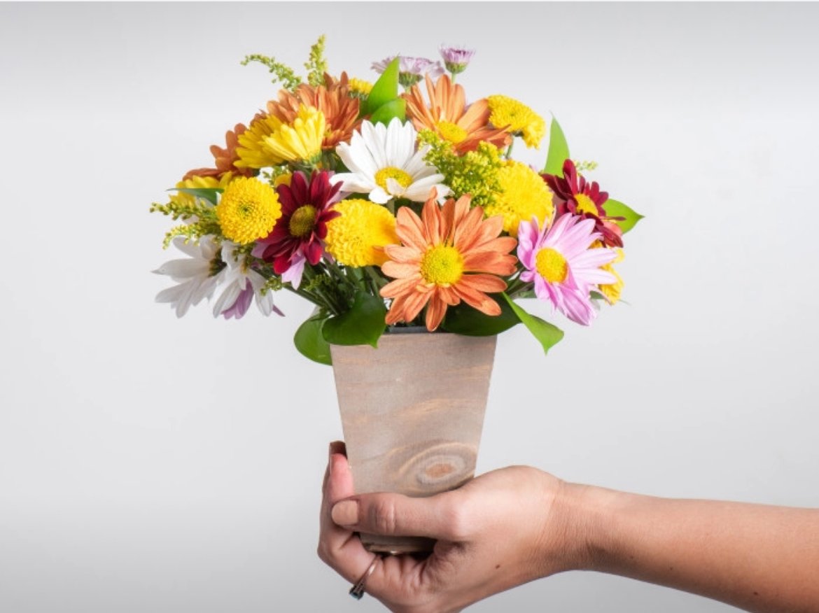 Arranjo de Margaridas Coloridas e Folhagem