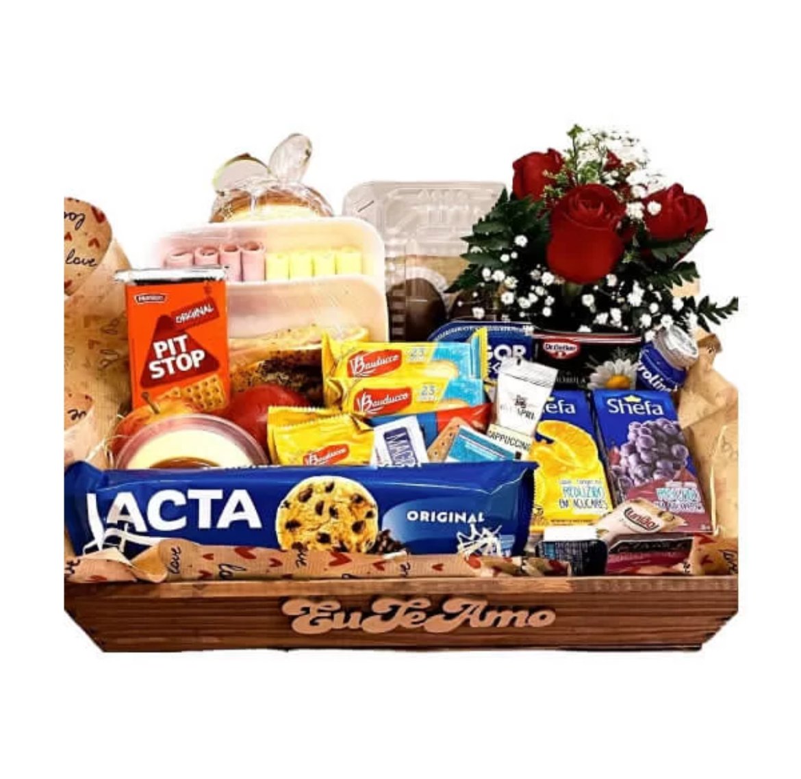 17 Itens da Bauducco sendo( Suco, Achocolatado, Chá, Cappuccino, Açúcar, Adoçante, Bolacha Doce, Torradas Salgadas, Mini Margarina e Geleia etc…)