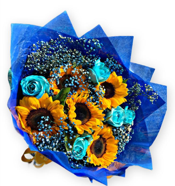 BUQUÊ DE GIRASSOL E ROSAS AMARELAS