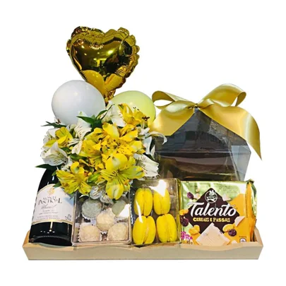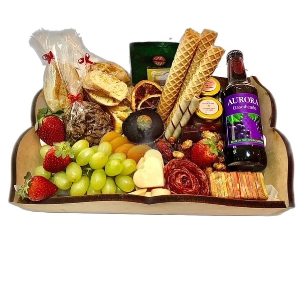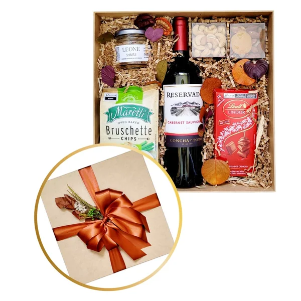 CESTA COM VINHO CHILENO, ANTEPASTO E CHOCOLATE